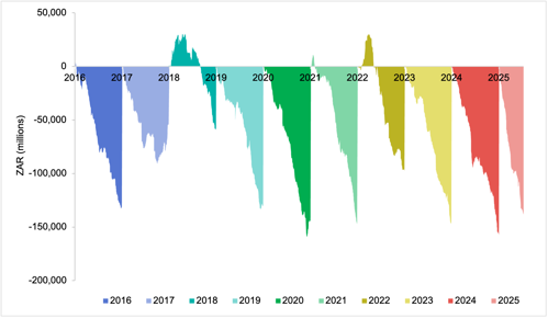 However, despite these strong returns, foreign investors have remained persistent net sellers of South African equities, with nearly R150 billions in net outflows recorded so far this year. This trend underscores that the main beneficiaries of the market’s strong performance have been local and foreign investors who chose to stay, rather than new foreign capital inflows.