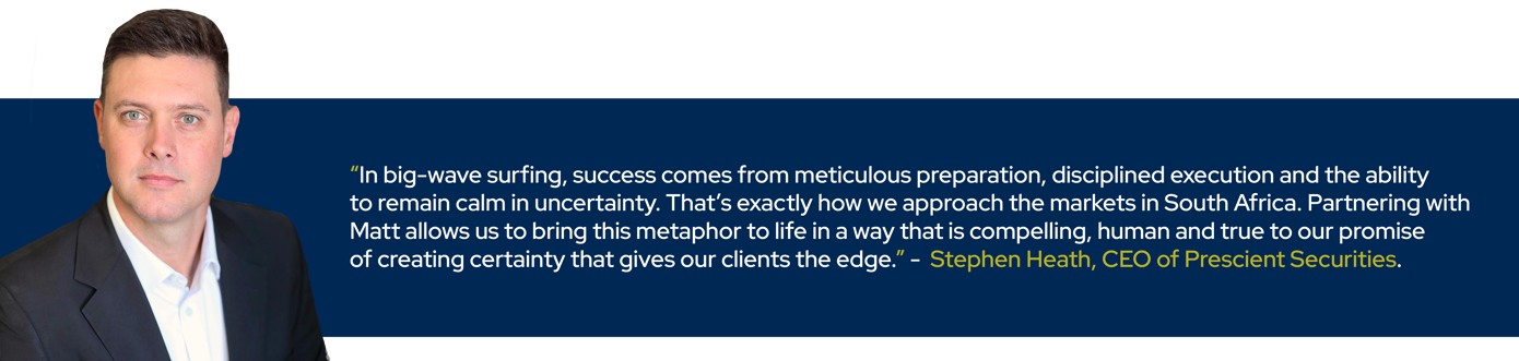 Prescient Securities is proud to announce our sponsorship of internationally acclaimed South African big-wave surfer Matt Bromley. This marks the start of a partnership that celebrates local talent both in financial services and beyond.